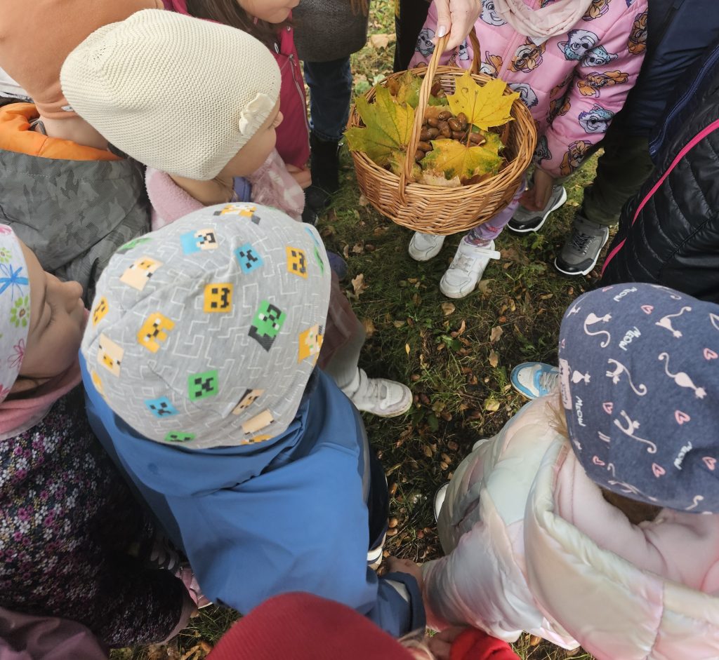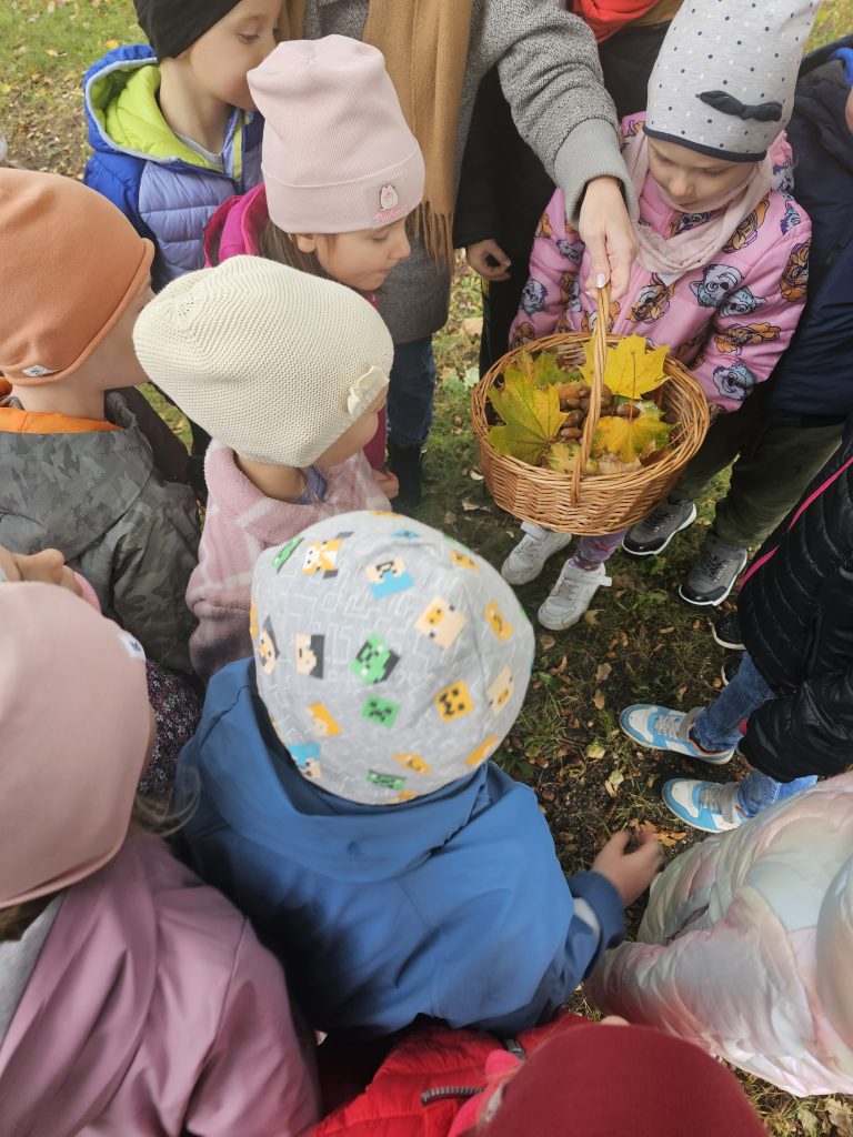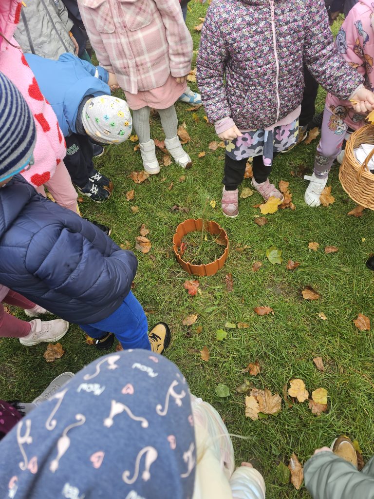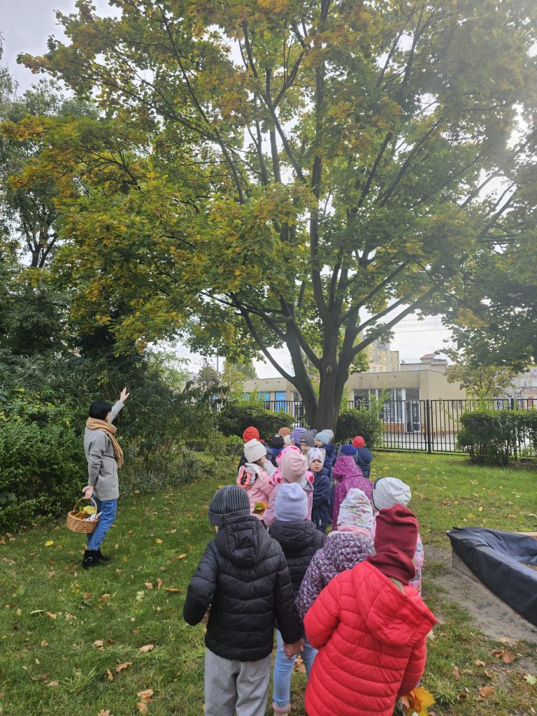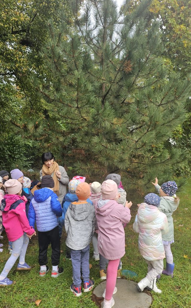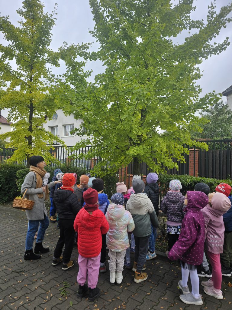 Dzisiejszym spacerem w naszym ogrodzie przedszkolnym rozpoczęliśmy tydzień pod hasłem Światowego Dnia Drzewa. Przedszkolaki poznały wszystkie gatunki drzew rosnących w naszym ogrodzie, a pod najbardziej baczną obserwację poddały miłorzęby, które pięknie i dumnie witają wszystkich wzdłuż alejki wejściowej do przedszkola. To było zadanie specjalne dla naszej grupy:) Odwiedziliśmy również nasze drzewko, posadzone na jesień w 2024r. – rośnie pięknie:) Przy okazji spaceru pozbieraliśmy też mnóstwo kolorowych liści oraz żołędzi