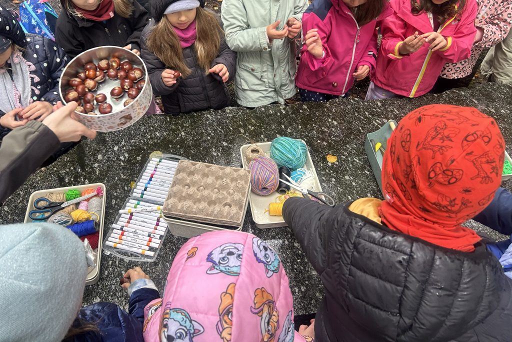 W dniu 7.10.25r. wyruszyliśmy na wycieczkę do lasu – jak co roku o tej porze w ramach obchodów Światowego Dnia Drzewa. Podczas leśnego spaceru prowadziliśmy obserwacje przyrodnicze, poszukiwaliśmy różnych skarbów jesiennych, rozmawialiśmy o ekosystemach. Uczestniczyliśmy również w warsztatach, podczas których każdy stworzył kasztanowy amulet:)