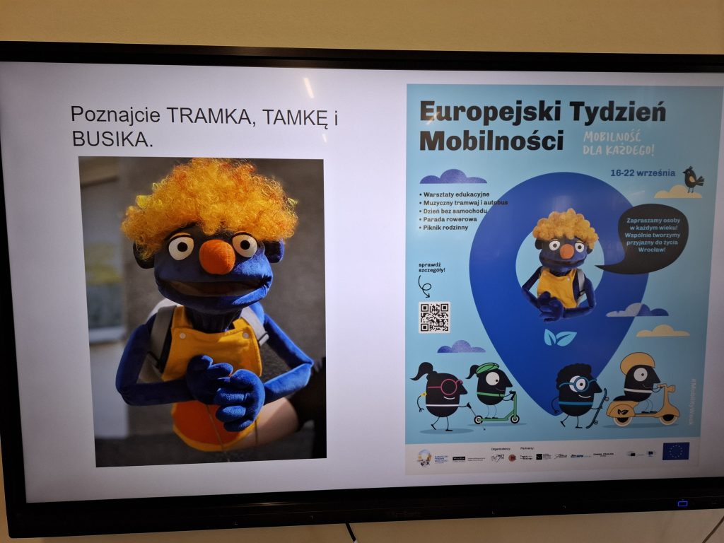Dzieci poznały sympatycznego bohatera – mapeta Tramka, który opowiedział im, jak można podróżować po mieście w sposób zdrowy i przyjazny dla środowiska.