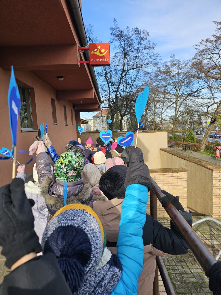 Zwieńczeniem obchodów był Dzień Życzliwości i Pozdrowień, który świętowaliśmy 21.11.25 r. Tego dnia przedszkolaki wyruszyły na spacer po okolicy, rozdając mieszkańcom niebieskie serduszka z dobrym słowem, szerząc uśmiech, życzliwość i przesłanie, że prawa dziecka zaczynają się od szacunku i dobroci w codziennych relacjach.