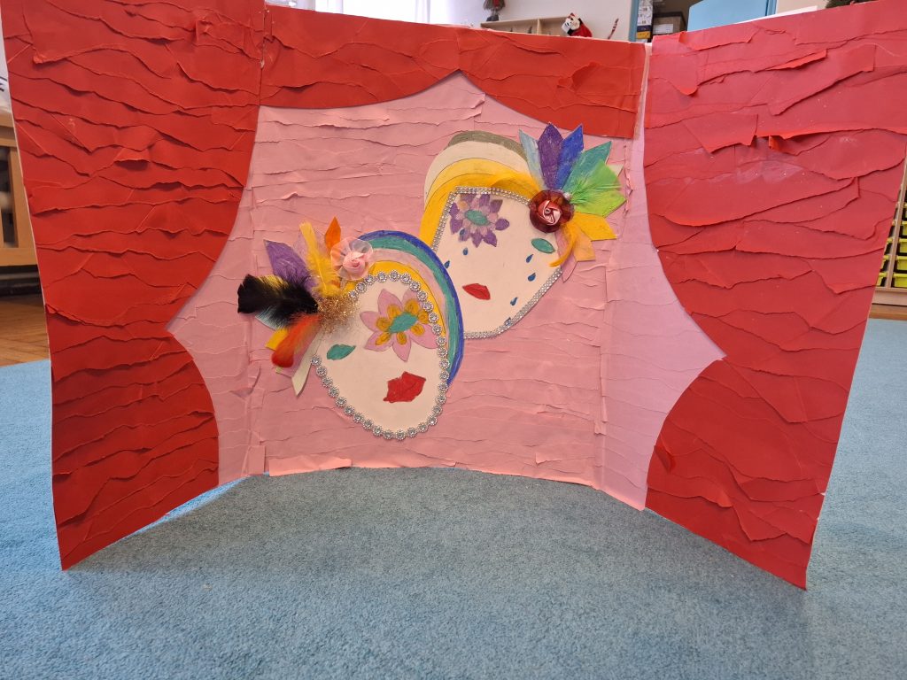 Z przyjemnością informujemy, że grupa III z naszego przedszkola przygotowała wspólną pracę plastyczną na konkurs o tematyce teatru, organizowany przez Artystyczni.pl. Cała grupa wzięła udział w tworzeniu pracy — każde dziecko dołożyło swój pomysł, zaangażowanie i twórczą energię. Dzięki temu powstało dzieło, które jest efektem wspólnej pracy, współdziałania i dziecięcej wyobraźni. Proces tworzenia stał się dla dzieci doskonałą okazją do przypomnienia sobie, jak wygląda teatr i jakie zasady tam obowiązują. Rozmawialiśmy o tym, jak ważne jest odpowiednie zachowanie: uważne słuchanie, skupienie oraz szacunek dla aktorów i innych widzów. W ten sposób praca plastyczna stała się nie tylko wyrazem kreatywności, lecz także piękną lekcją kultury i teatru. Z dumą prezentujemy naszą wspólną pracę, która oddaje dziecięcy entuzjazm, radość tworzenia oraz zainteresowanie światem sztuki.