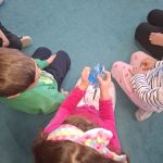 Trzeciego dnia projektu „Mali Wielcy Odkrywcy” dzieci uczestniczyły w zajęciach poświęconych wielozmysłowemu poznawaniu materiałów. Przedszkolaki wcieliły się w rolę małych badaczy, którzy poprzez samodzielne działanie, obserwację i doświadczenie odkrywali właściwości różnych przedmiotów.
