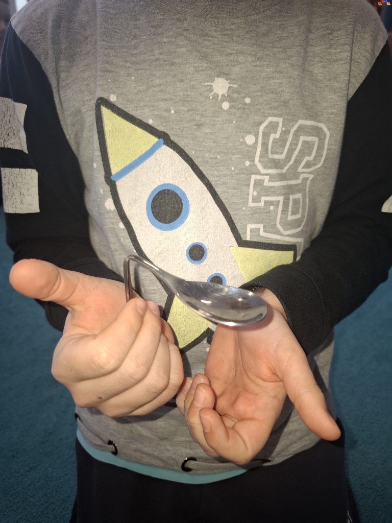 Pierwszym zadaniem był test wytrzymałości materiałów. W trakcie doświadczenia dzieci sprawdzały, czy wybrane przedmioty można odkształcić, czy pozostają sztywne i niezmienne. Do badań wykorzystano m.in. metalową łyżkę, drewniany klocek, plastikową butelkę oraz papier. Dzieci samodzielnie próbowały zgniatać, wyginać i naciskać materiały, porównując ich twardość, elastyczność oraz odporność na nacisk.