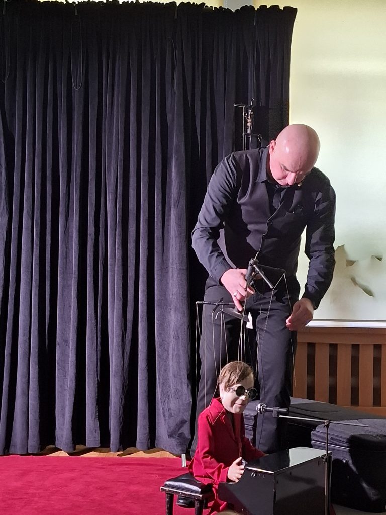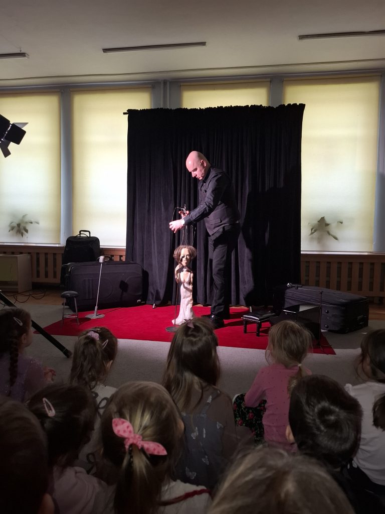 14 stycznia 2026 r. nasze przedszkole odwiedził Teatr Falkoshow z niezwykłym spektaklem pt. „Marionetki”. Dzieci miały okazję poznać marionetkowe postacie inspirowane legendami światowej sceny muzycznej, takimi jak Céline Dion, Elvis Presley, Tina Turner oraz Elton John. Podczas przedstawienia przedszkolaki wysłuchały najsłynniejszych utworów artystów, a także dowiedziały się, jak powstają marionetki, w jaki sposób i dlaczego potrafią się poruszać. Spotkanie było fascynującą lekcją łączącą muzykę, sztukę i teatralną magię, która wzbudziła w dzieciach ogromne zainteresowanie i radość.